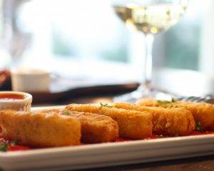 RD$460.00Tortillas wraps con tiras de pollo empanizada, lechuga romana, tomate y salsa galic.