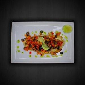 RD$550.00Filete de mero cocinado al vapor bañado en salsa marinero a base de aceitunas y pimientos, acompañado de la guarnición de su elección.