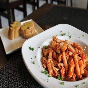 Filete de mero empanizado acompañado de vegetales hervidos y guarnición de su elección.